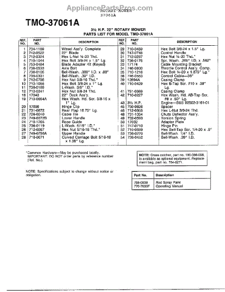 Parts for Mtd 37061A: 3.5Hp 22" Rotary Mower Page 2 Parts