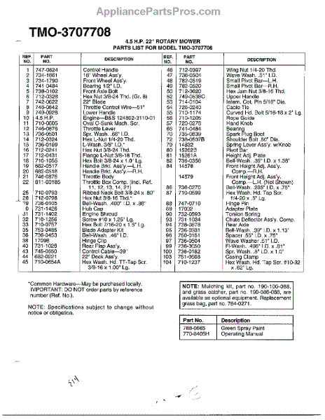 Parts for Mtd 3707708: 4.5Hp 22" Rotary Mower Page 2 Parts