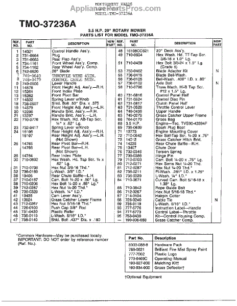 Parts for Mtd 37236A: 3.5Hp 20" Rotary Mower Page 2 Parts