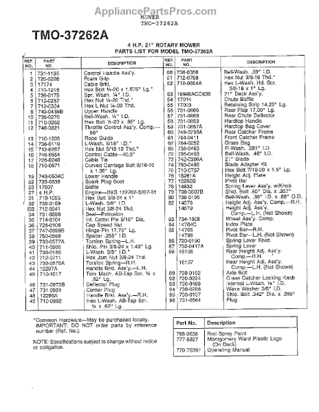 Parts for Mtd 37262A: 4Hp 21" Rotary Mower Page 2 Parts