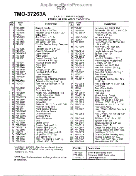 Parts for Mtd 37263A: 5Hp 21" Rotary Mower Page 2 Parts