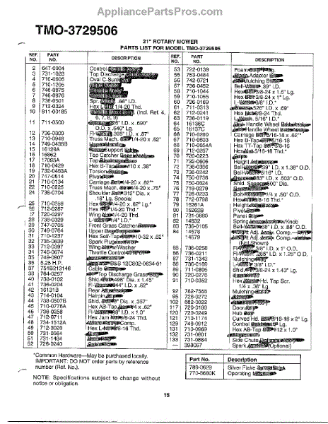 Parts for Mtd 3729506: 21" Rotary Mower Page 2 Parts