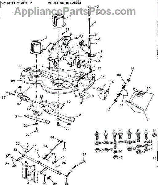 Parts for Craftsman 91725792: 36 Inch Rotary Mower Parts