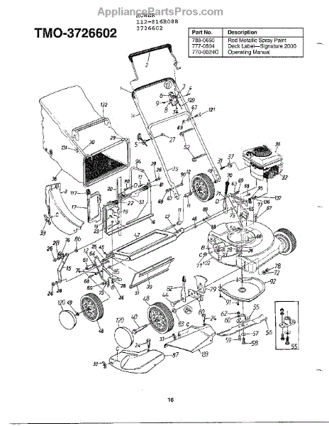 Parts for Mtd 112-816R000: 21" Rotary Mower Parts