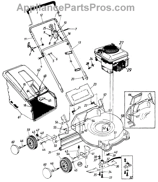 Lower handle for walk-behind lawn mowers. Replace your cracked, bent, or broken lower handle assembly to restore proper mower operation and control.
