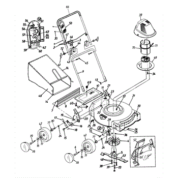 Protective hub cap for walk-behind lawn mower wheels. Shields the wheel hub from dirt, debris, and moisture. Replace if cracked, broken, or missing.