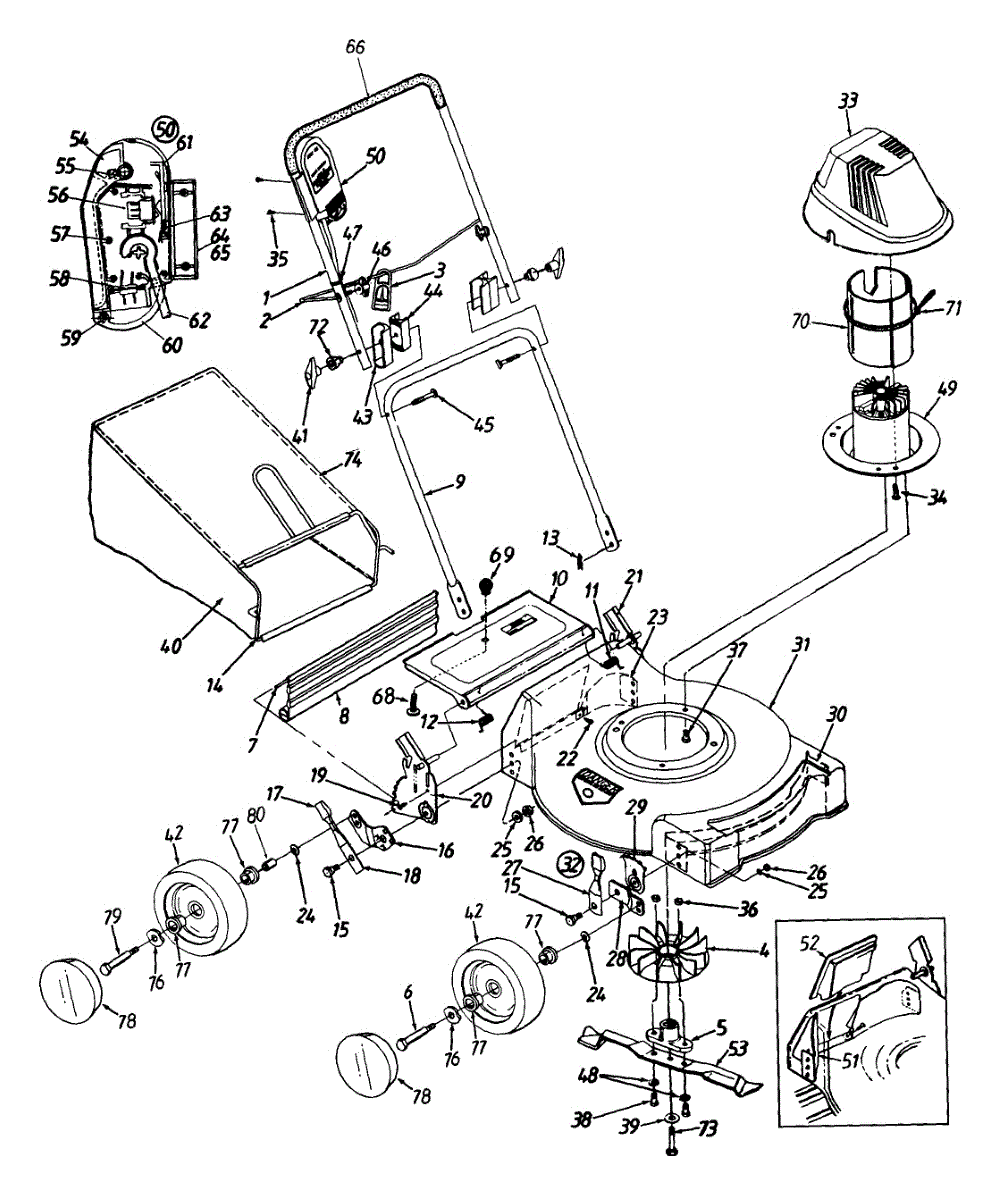 Handle bracket kit for lawn mowers. Includes all parts needed to attach mower handles to the main body. Replace if brackets are cracked, broken, or missing.