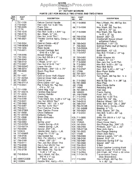 Parts for Mtd 37464A: 21" Rotary Mowers Page 2 Parts