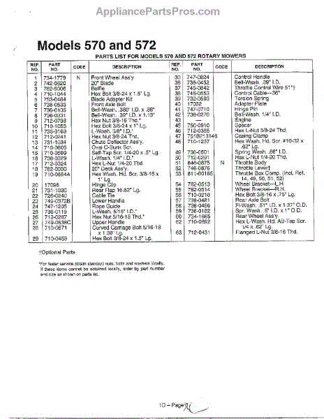 Parts for Mtd 114-570A000: Rotary Mowers Page 2 Parts