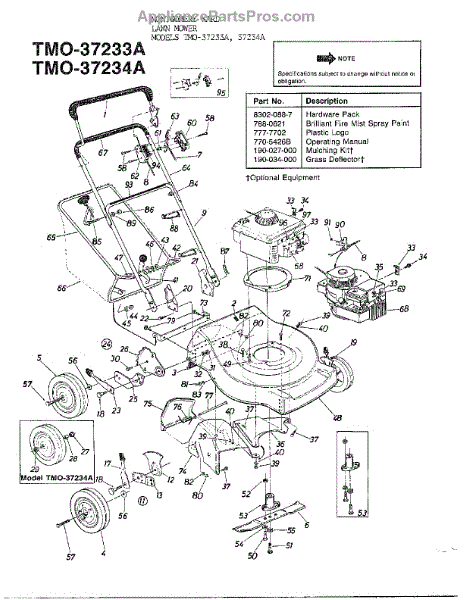Parts for Mtd 37234A: 20" Rotary Mowers Parts