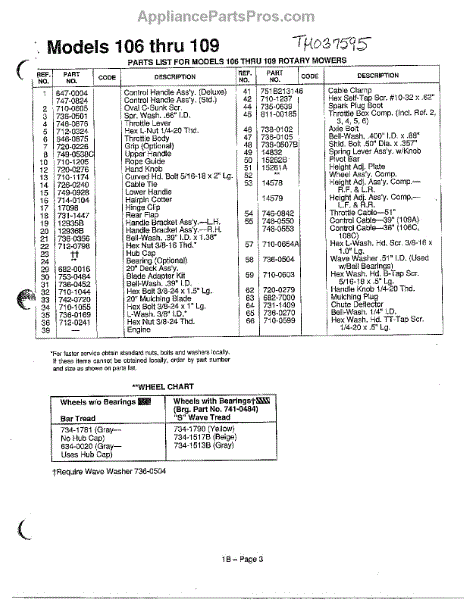 Parts for Mtd 115-109A000: Rotary Mowers / Wheel Chart Page 2 Parts