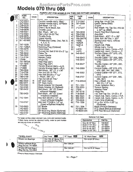 Parts for Mtd 3709700: Rotary Mowers / Wheel Chart Page 2 Parts