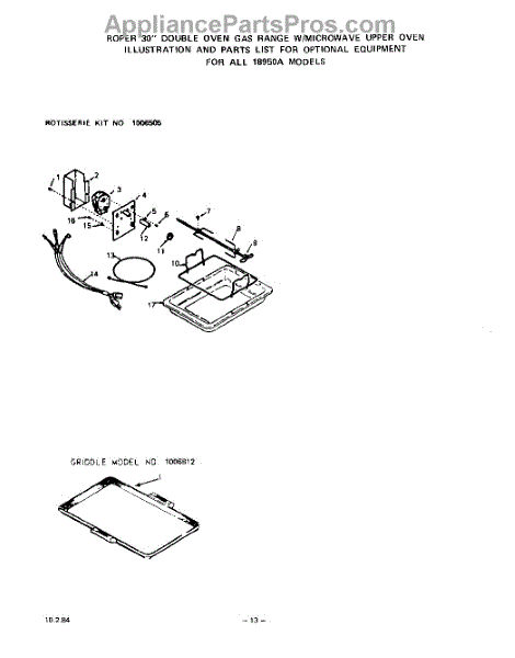 Parts for Roper 1895W0A: 09 - Rotisserie , Griddle Parts
