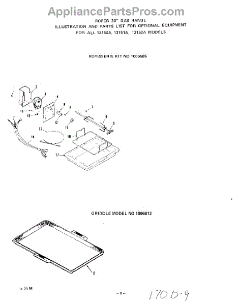 Parts for Roper 1315W0A: 07 - Rotisserie Kit , Griddle Parts