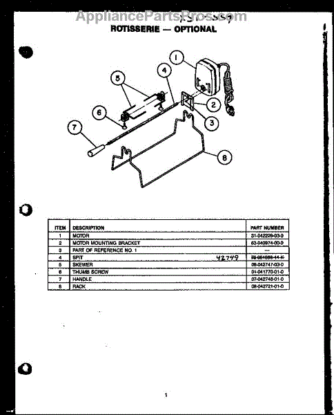 Parts for Modern Maid PHU185NWW: Rotisserie-Optional Parts
