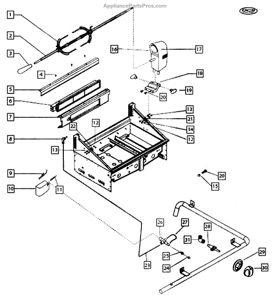 This rotisserie rod handle secures and lets you safely insert or remove the rotisserie spit from the oven. It restores a firm grip and proper rod engagement so the rotisserie can turn and cook evenly. What it does: