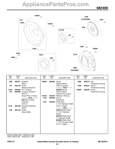 Parts for Briggs & Stratton 582447-0219-E2: Sae Flywheel, Flywheel Housing Parts