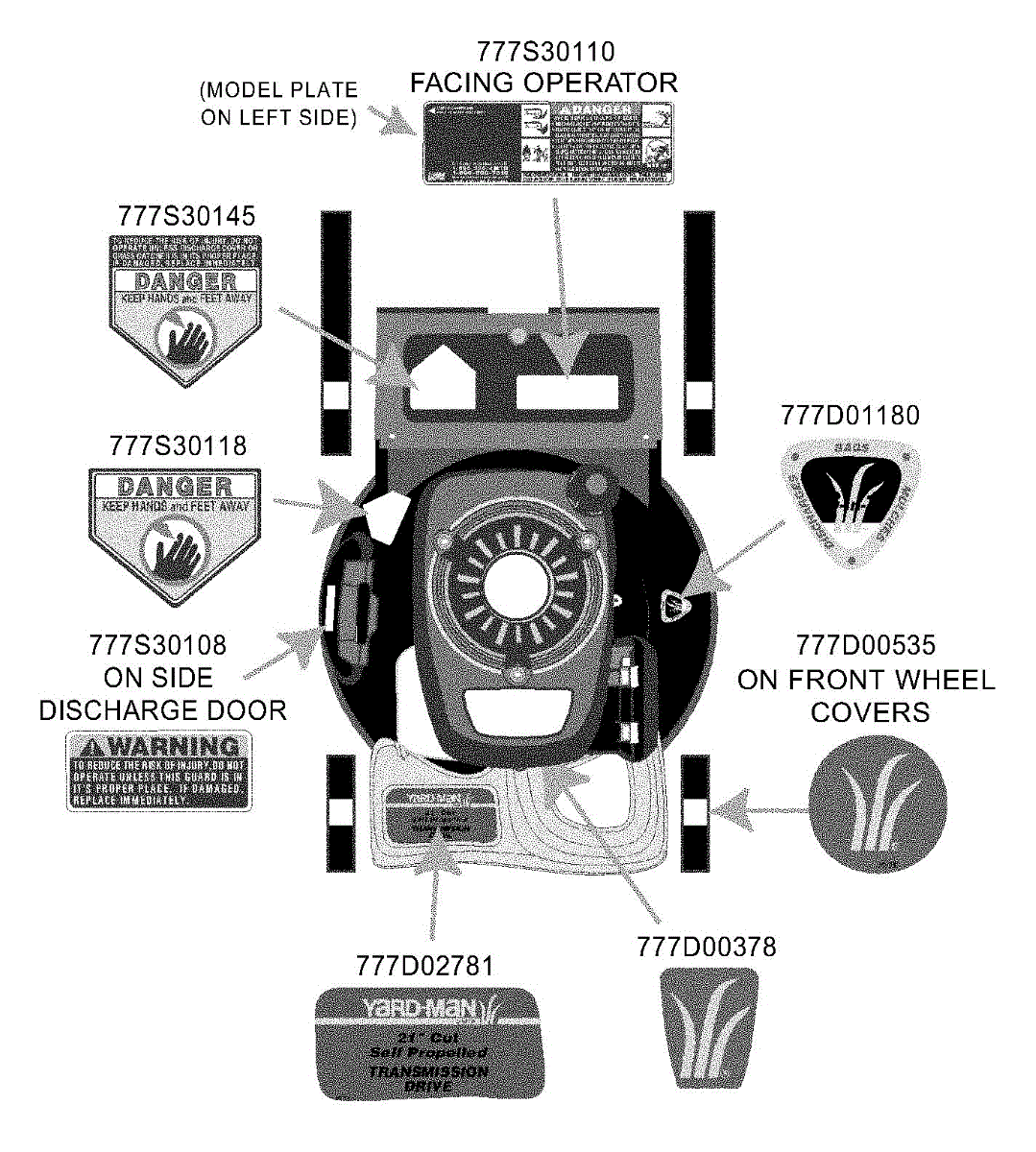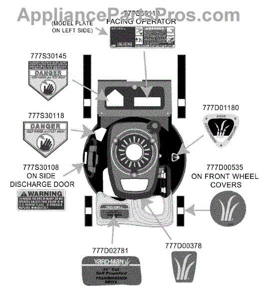 Parts for Yard-Man 12A-568Q401 / 2003: Safety & Decorative Labels Parts