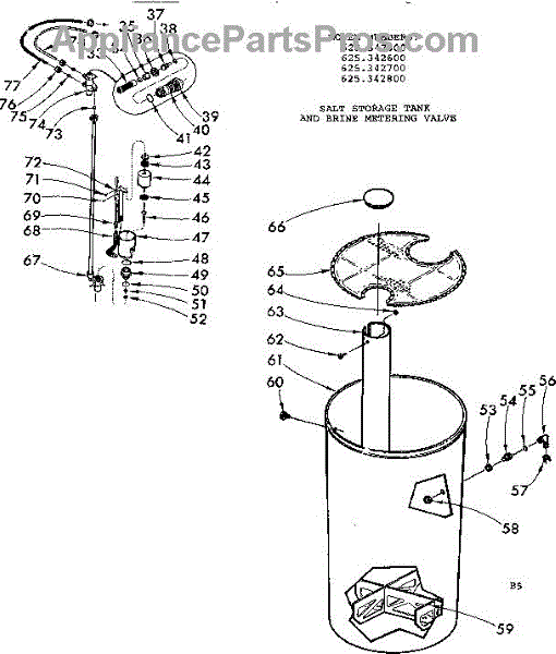 Parts for Kenmore 625.342600 (625342600, 625 342600): Salt Storage Tank And Brine Metering Valve Parts
