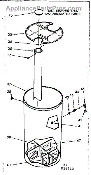 Parts for Kenmore 625.34713 (62534713, 625 34713): Salt Storage Tank & Associated Parts