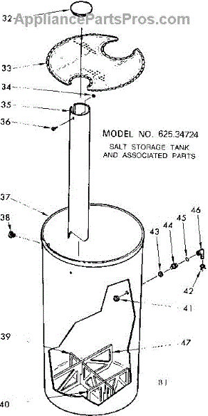 Parts for Kenmore 625.34724 (62534724, 625 34724): Salt Storage Tank & Assoc. Parts