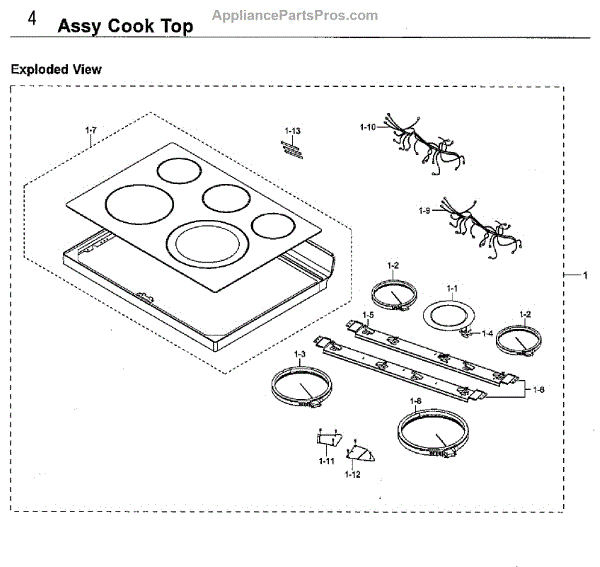 Samsung DG94-01301D Range Cooktop Frame Assembly OEM Part