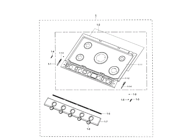 Samsung DG94-01536B Cooktop Frame Assembly For Na30k7750tg, Na9300k OEM Part