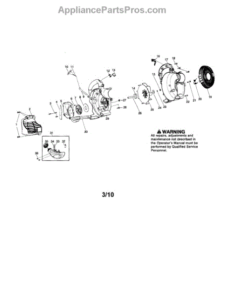 This is a leaf blower fan blade, also called an impeller. This is what creates the flow of air out of the machine that blows leaves, grass clippings, and other debris out of the way. Without this part, the leaf blower would be unable to move air at all. The leaf blower fan blade is subject to some wear and tear through normal use. It is also made of plastic and may degrade over time, eventually cracking. If the leaf blower is not moving air and the engine is running normally, this could be the problem. Replacing the leaf blower fan blade will require opening the blower motor housing. Locate the fan blade, remove the Torx screws, and then remove the old impeller. Install the new one, replace the screws, and then reassemble the housing. This replacement fan blade is made from plastic with a metal sheath/insert. Note that this is an OEM part, and it is sold individually. It fits over 44 different Craftsman and Husqvarna gas-powered leaf blowers.