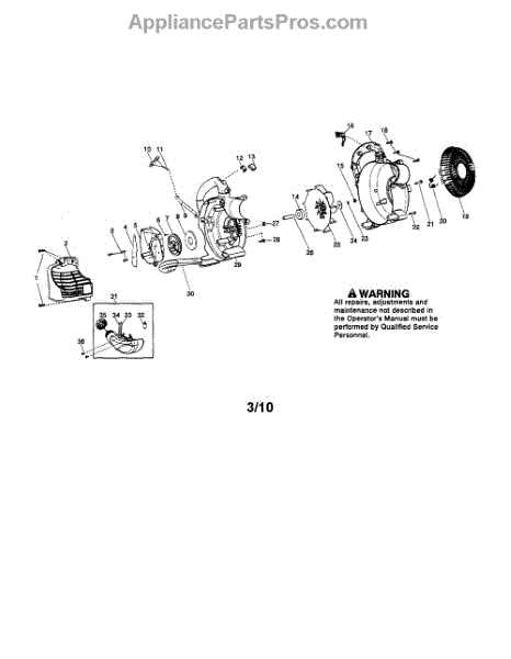 This is a leaf blower fan blade, also called an impeller. This is what creates the flow of air out of the machine that blows leaves, grass clippings, and other debris out of the way. Without this part, the leaf blower would be unable to move air at all. The leaf blower fan blade is subject to some wear and tear through normal use. It is also made of plastic and may degrade over time, eventually cracking. If the leaf blower is not moving air and the engine is running normally, this could be the problem. Replacing the leaf blower fan blade will require opening the blower motor housing. Locate the fan blade, remove the Torx screws, and then remove the old impeller. Install the new one, replace the screws, and then reassemble the housing. This replacement fan blade is made from plastic with a metal sheath/insert. Note that this is an OEM part, and it is sold individually. It fits over 44 different Craftsman and Husqvarna gas-powered leaf blowers.