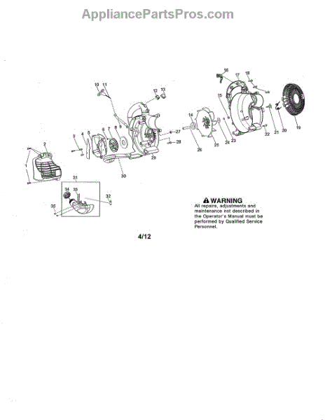 This is a leaf blower fan blade, also called an impeller. This is what creates the flow of air out of the machine that blows leaves, grass clippings, and other debris out of the way. Without this part, the leaf blower would be unable to move air at all. The leaf blower fan blade is subject to some wear and tear through normal use. It is also made of plastic and may degrade over time, eventually cracking. If the leaf blower is not moving air and the engine is running normally, this could be the problem. Replacing the leaf blower fan blade will require opening the blower motor housing. Locate the fan blade, remove the Torx screws, and then remove the old impeller. Install the new one, replace the screws, and then reassemble the housing. This replacement fan blade is made from plastic with a metal sheath/insert. Note that this is an OEM part, and it is sold individually. It fits over 44 different Craftsman and Husqvarna gas-powered leaf blowers.