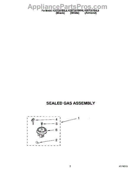 Parts for Kitchenaid KDDT207BBL8: 02 - Sealed Gas Assembly Parts