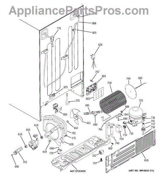 Note: This is a 115-volt AC fan motor. For the 12-volt DC fan motor, order part number WR60X10209. Right-hand thread. The compatible fan blade is part number WR60X10207.