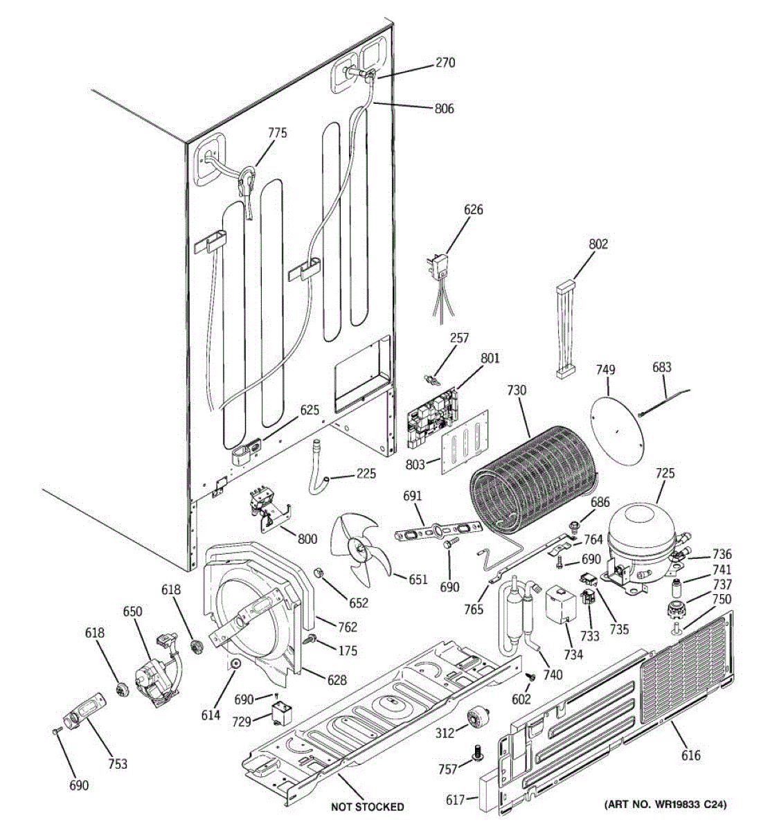 This evaporator fan bracket secures the evaporator fan assembly behind the rear panel. A rigid, correct-fit mount preserves blade clearance and airflow across the evaporator coils for steady temperatures while minimizing vibration and noise.