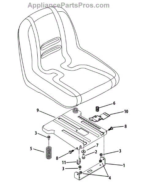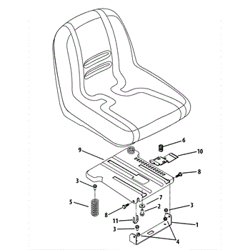 Metal seat mounting bracket for lawn tractors and riding mowers. Secures seat to tractor frame. Replace if bracket is cracked, bent, or rusted out.