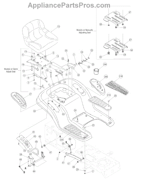 Seat pivot bracket allows angle adjustment for operator comfort on riding mowers. Replace if cracked, broken, or worn. Installs between seat and frame.