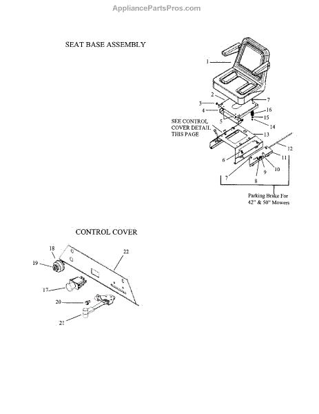 Parts for Swisher ZT18542: Seat Base / Control Cover Parts