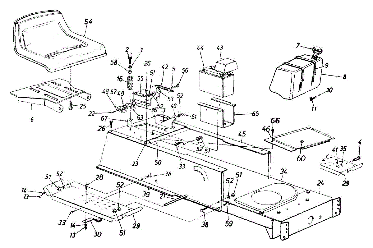 Parts for Mtd 133M617G000 / 1993: Seat / Battery / Fuel Tank / Frame Parts