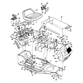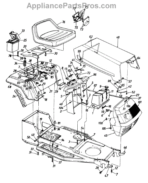 Parts for Turf Pro 134B451E196 / 1994: Seat / Battery / Fuel Tank / Fenders / Hood Assembly Parts