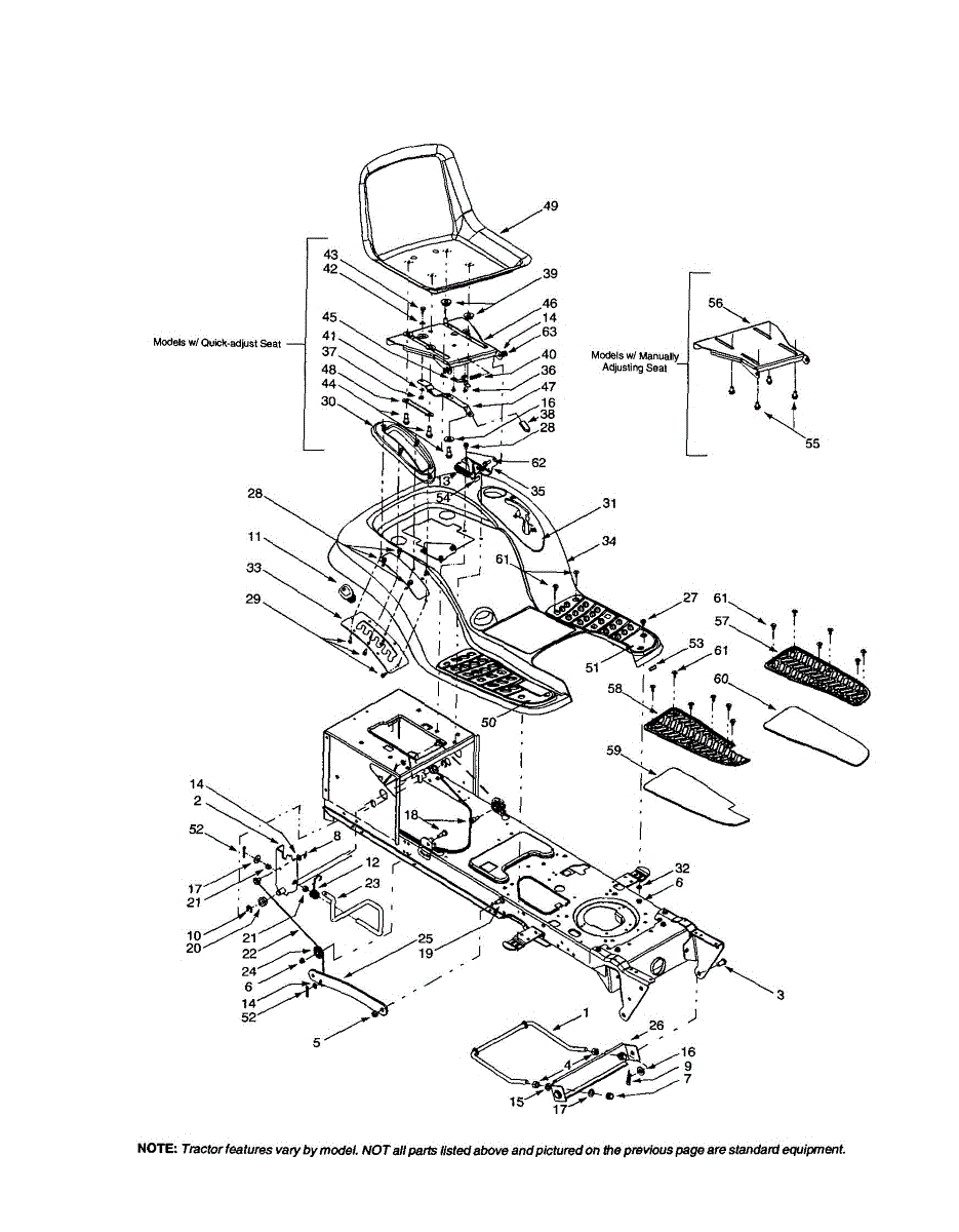 Replacement seat for lawn tractors and garden tractors. Installs with 4-bolt mounting system. Replace if your original seat is cracked, torn, or damaged.