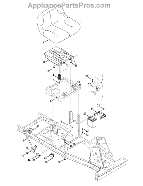 This replacement part is a lawn mower seat, and it is intended for use in different types of lawn equipment. This is a genuine replacement part made by MTD. This seat ensures comfort while mowing the lawn and allows the user to sit properly on the machine while in use.A new lawn mower seat may be needed if the current one is worn down or uncomfortable to sit in. It is possible that the seat covering can become torn or ripped. If this occurs it is recommended a replacement be ordered. To replace this part a screwdriver and a pair of pliers will likely be needed. Be sure to reference the specific owner's manual prior to starting a repair for this part. This seat is a genuine OEM replacement part and is sold individually. This part is sourced directly from the manufacturer to ensure proper fit on any appliance.