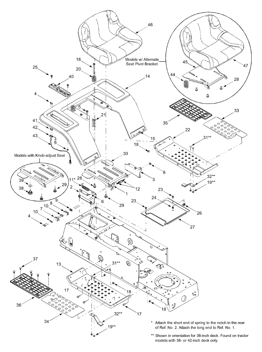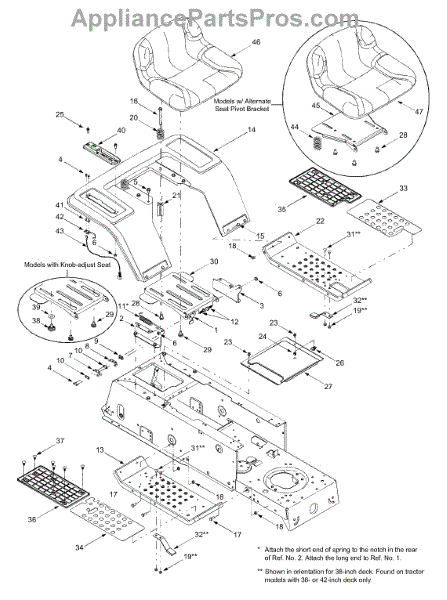 Ratchet fastener for lawn mowers and tractors. Secures components in place. Replace if broken, stripped, or missing to properly fasten parts together.