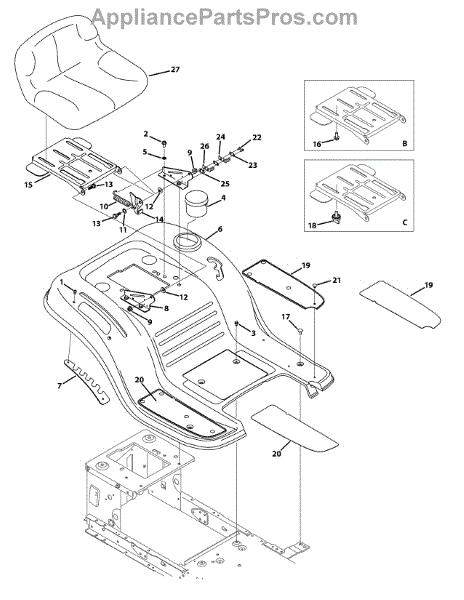 Replace your cracked, worn, or broken lawn tractor seat. Mounts to the tractor frame to provide a comfortable seating surface for the operator.