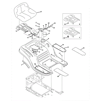 Replacement seat for front-engine lawn tractors. Installs on the seat platform for operator comfort. Needed when original is cracked, torn, or worn.