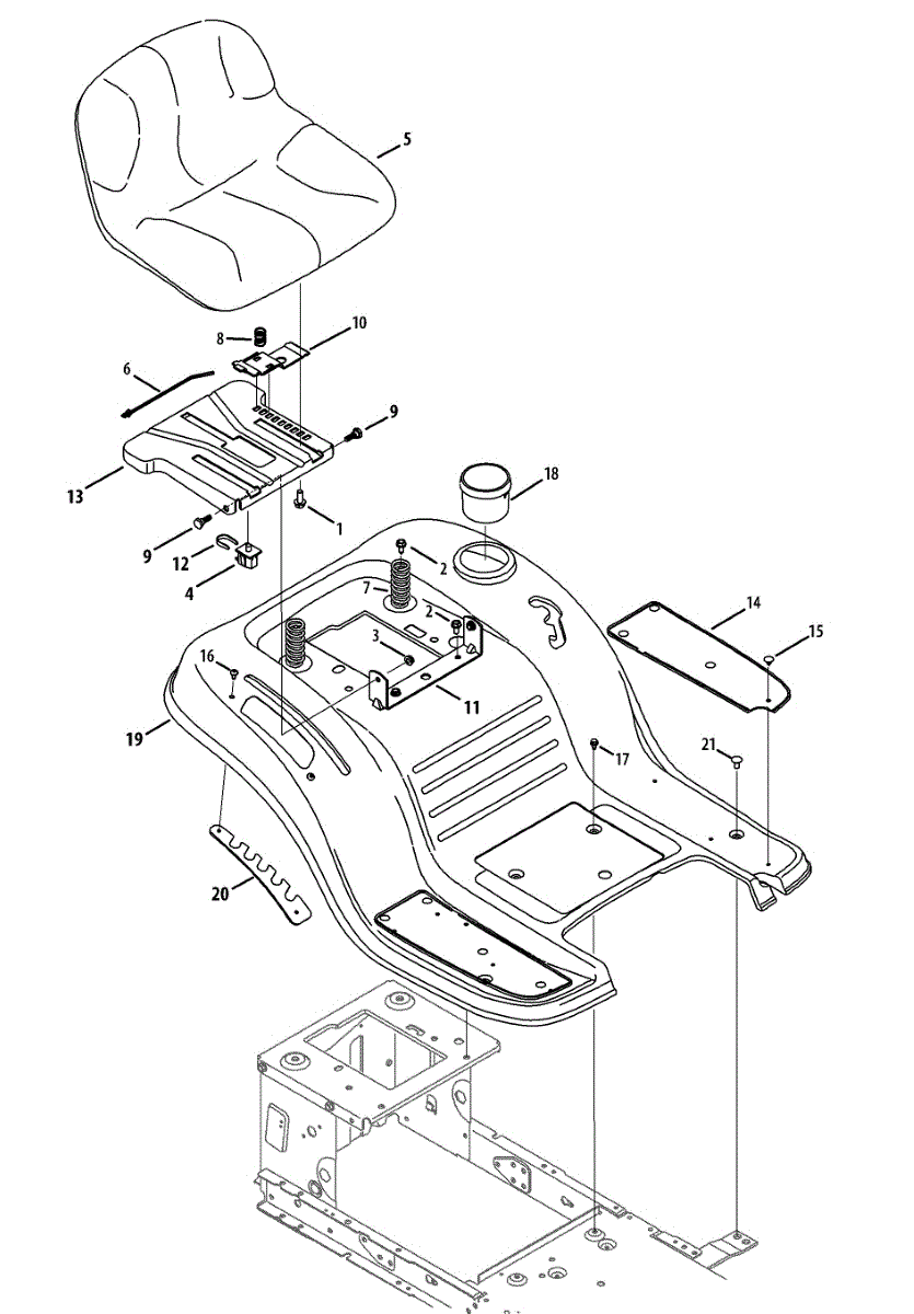 This replacement part is a seat. It is a genuine replacement part made by MTD. This seat is typically found in riding lawnmowers and helps the user to operate the machine properly. The seat provides support so they are able to focus on the job at hand. A new seat might be needed if the current one is visibly damaged. This can include being cut or torn. If the seat is damaged it might not provide enough support to the user. Be sure to refer to the owner's manual for more specific details on how to replace this seat. This repair should be fairly simple and only require common household tools. This part is sold individually and is sourced directly from the manufacturer to ensure proper fit and long-lasting use. This is a genuine OEM replacement part.