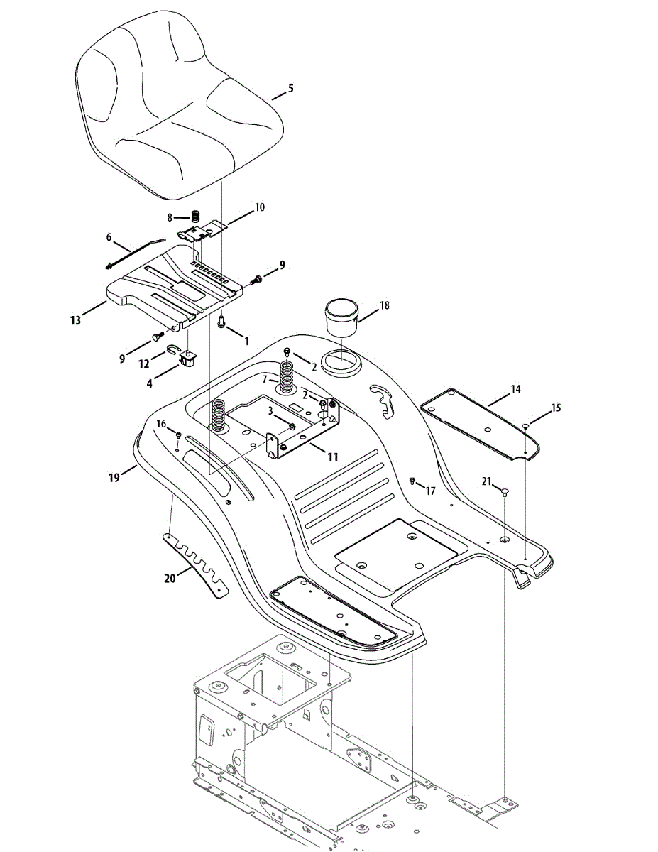 This replacement part is a seat. It is a genuine replacement part made by MTD. This seat is typically found in riding lawnmowers and helps the user to operate the machine properly. The seat provides support so they are able to focus on the job at hand. A new seat might be needed if the current one is visibly damaged. This can include being cut or torn. If the seat is damaged it might not provide enough support to the user. Be sure to refer to the owner's manual for more specific details on how to replace this seat. This repair should be fairly simple and only require common household tools. This part is sold individually and is sourced directly from the manufacturer to ensure proper fit and long-lasting use. This is a genuine OEM replacement part.