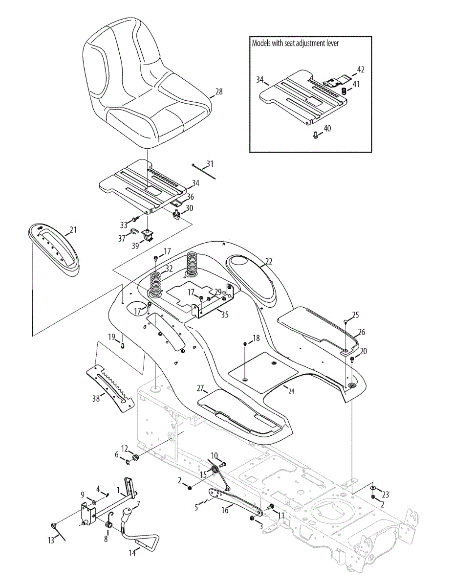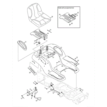 This knob is an OEM replacement part for MTD power equipment. The seat knob is responsible for adjusting the height of the seat to ensure a comfortable and safe position for the operator while using the lawn tractor. It is usually located on the side or the front of the seat and is connected to a shaft or linkage that controls the seat height adjustment.