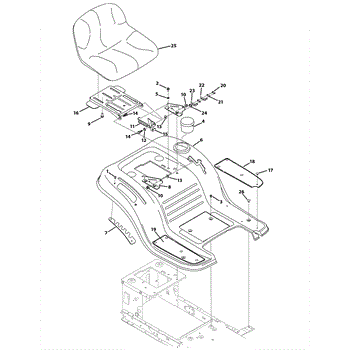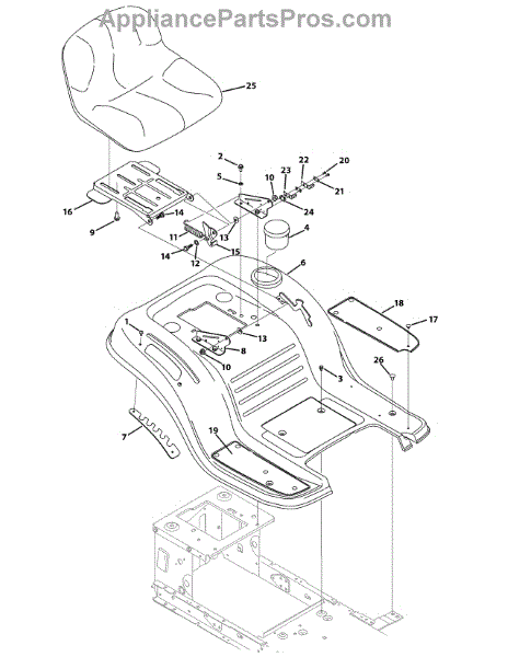 Right-side running board pad for lawn tractors. Mounts to the tractor frame to provide a footrest surface. Replace if cracked, worn, or missing.
