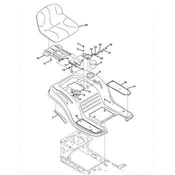 Seat mounting bracket for lawn tractors. Secures the seat to the tractor frame. Replace if cracked, bent, or broken to restore proper seat stability.