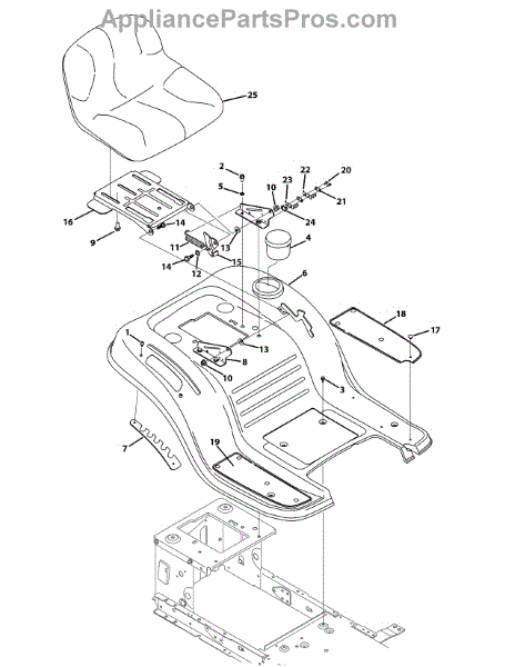 Replace your cracked, worn, or broken lawn tractor seat. Mounts to the tractor frame to provide a comfortable seating surface for the operator.