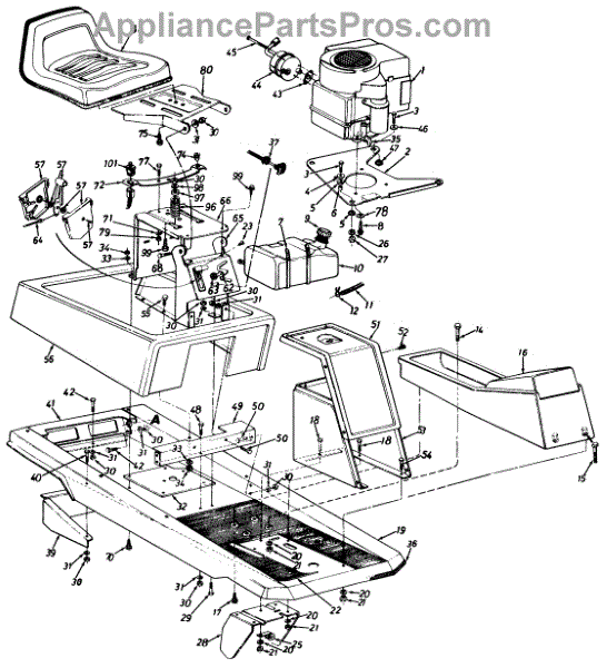 Parts for Mtd 135B560B000 / 1995: Seat / Frame Assembly / Fuel Tank / Muffler / Throttle Control Parts